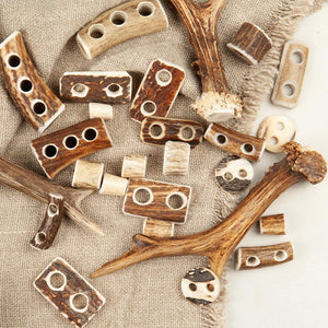 Jedes Hirschhorn-Element wird einzeln von Hand verarbeitet: zugeschnitten, gebohrt, gefräst und sorgfältig geglättet – bis es perfekt zu deinem Unikat passt. Als Zugstopp, Stopper oder Designelement wird es so zu einem hochwertigen Detail, das jedes Stück sichtbar veredelt.
